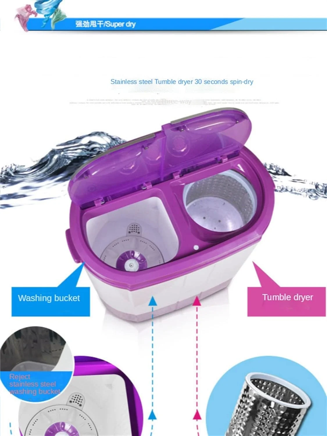 The mini portable washing machine adopts ultra silent technology. Our compact washing machine consumes less water. Excellent products and services can always save you more time, money, energy and trouble. Improve your quality of life.