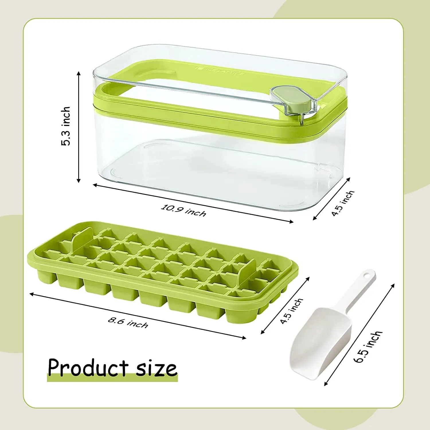 Practical Storage Bin - The ice cube tray for freezer includes a 0.5-gallon large-capacity ice storage bin, which can be used together with the ice tray to prevent ice cubes from scattering. Additionally, any leftover ice cubes can be stored in the bin for future use.