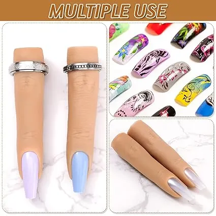 2 Pieces Silicone Nail Training Finger Bendable Fake Training Finger Silicone Practice Finger for Acrylic Nail Silicone Nail Practice Hand, for Nails Practice, DIY Nails, Nail Art