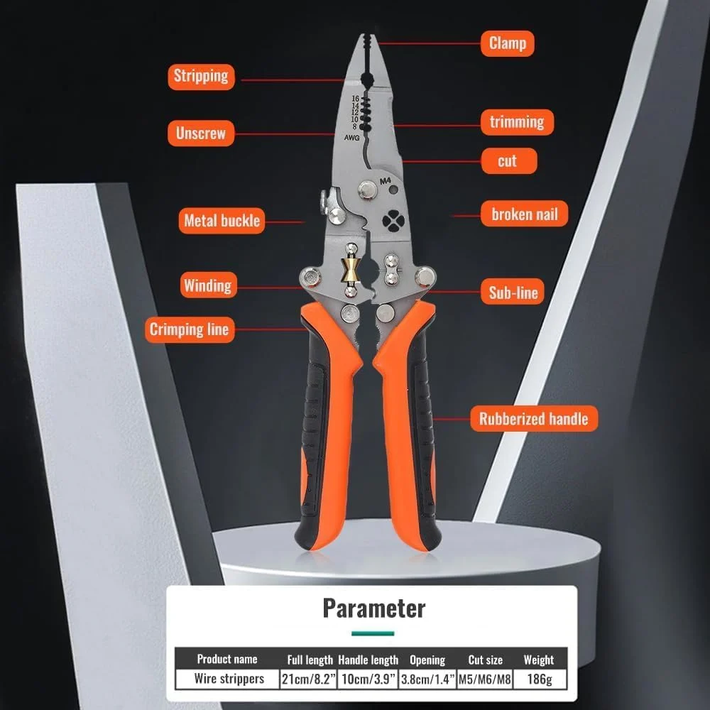 Versatile 12-in-1 Tool Our upgraded 12 in 1 Multifunctional Wire Stripper Crimper Cable Cutter Pliers is the ultimate tool for all your wire stripping, crimping, and cutting needs. It combines multiple functions into one convenient tool, saving you time and effort.
