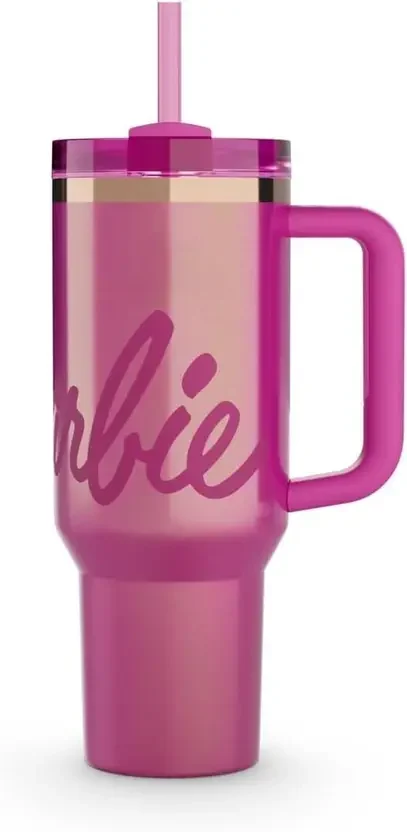 Barbie Stainless Steel Tumbler with Straw – Pink Collectible Drinkware