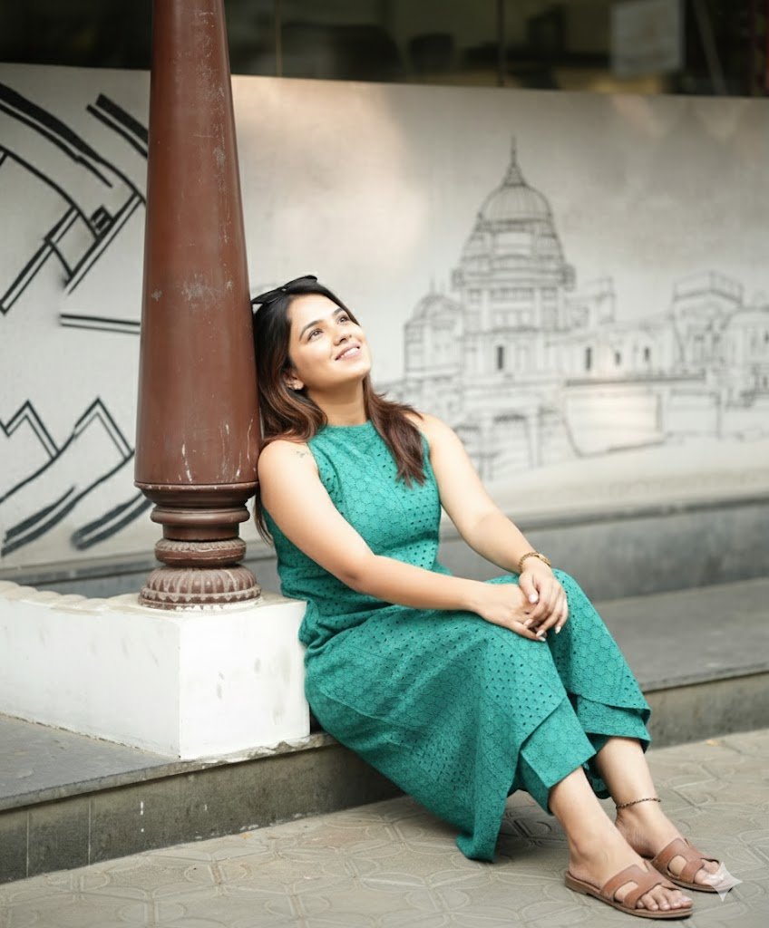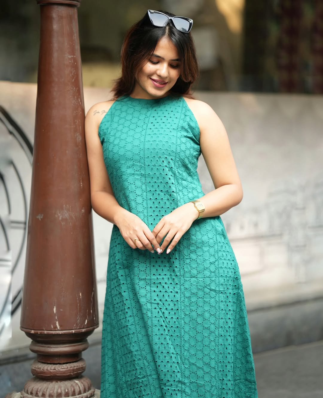 Hashtags: #SmileBright #TealOOTD #EyeletLove #StreetStyleIndia #EffortlessChic
