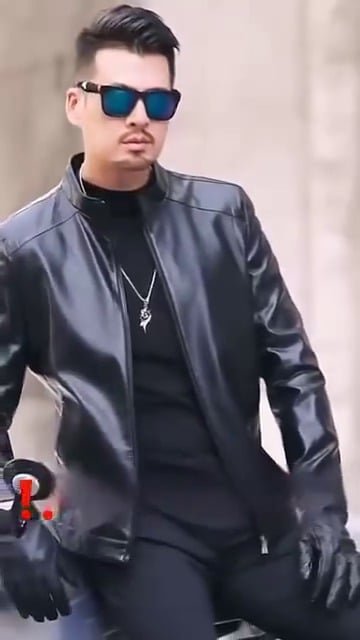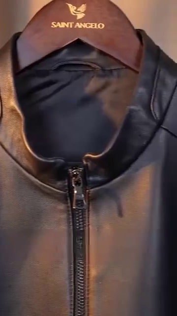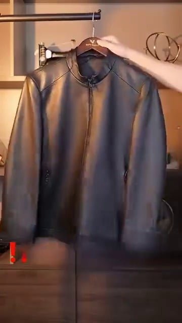 Men Solid Leather Jacket