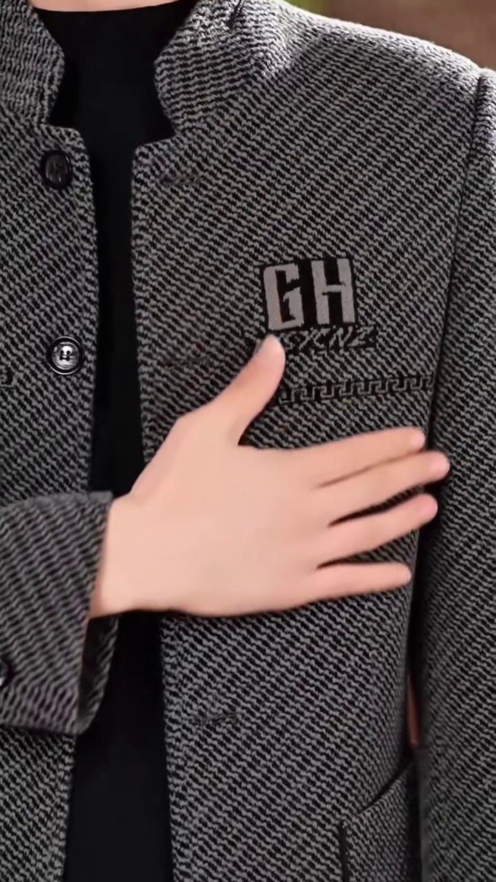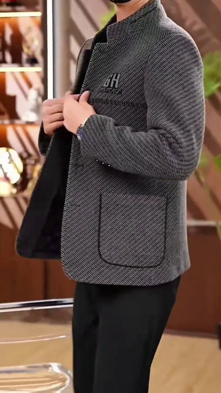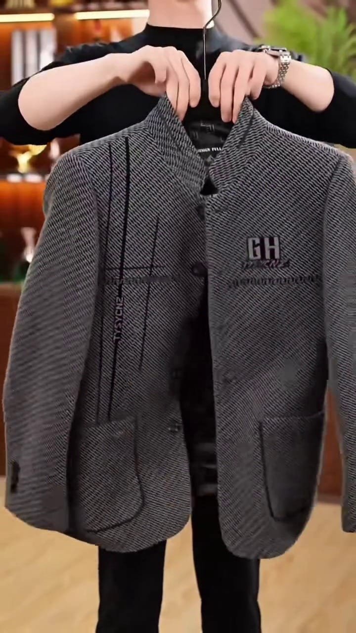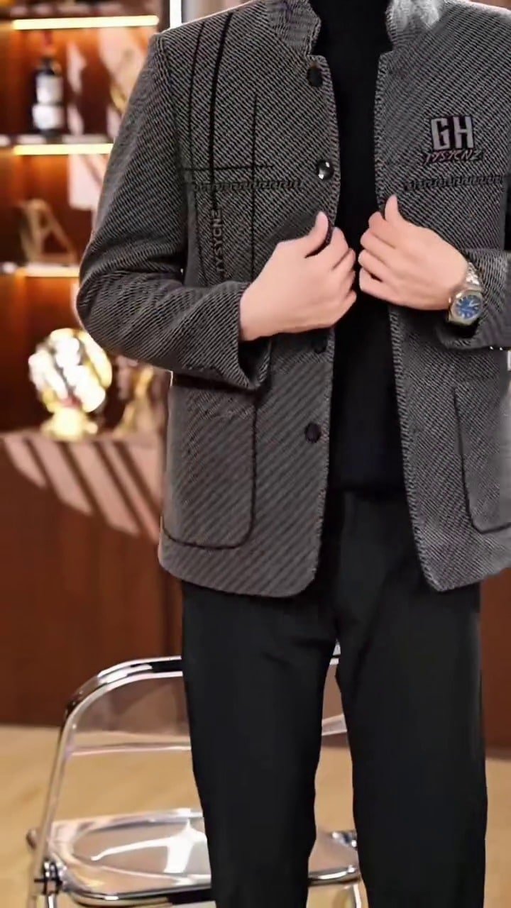 Be the first to review “Men’s Grey Herringbone Plaid Stand Collar Jacket”